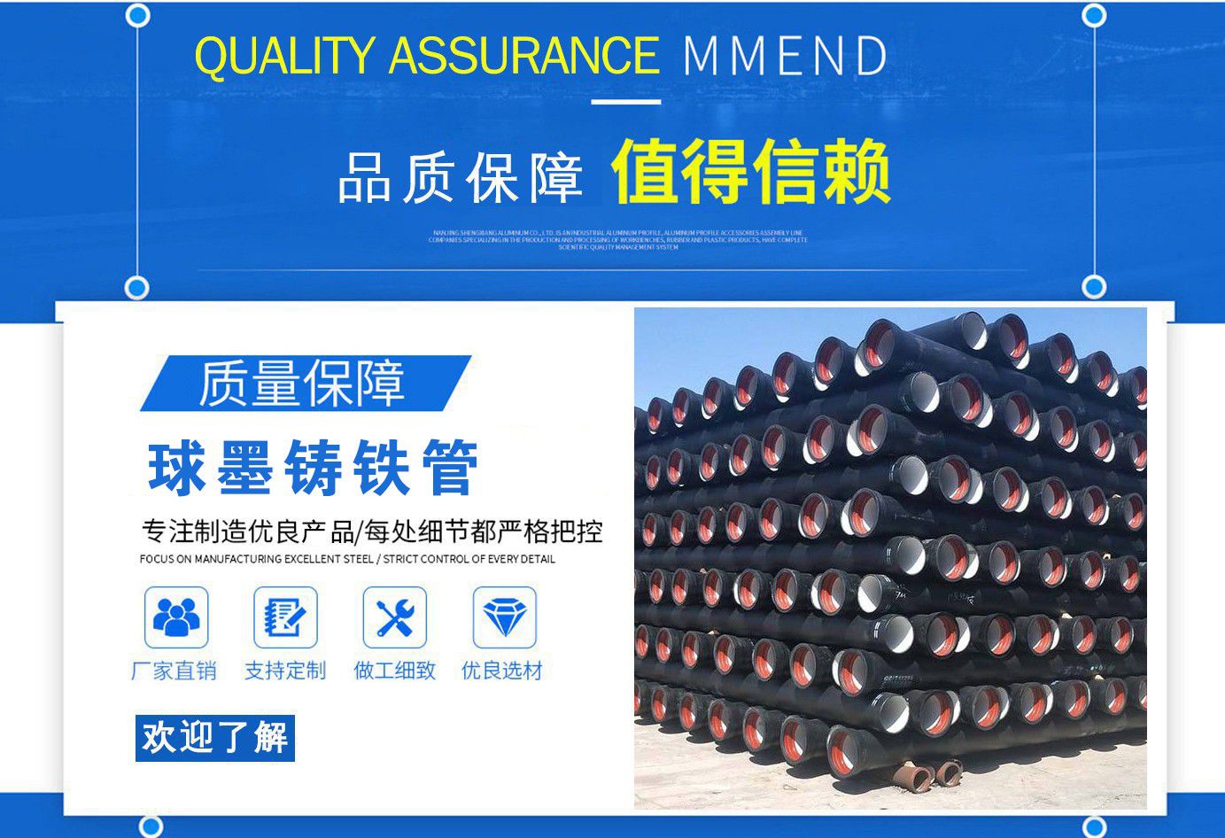 山西飛翔鑄業(yè)有限公司是一家以新興技術致力于研制開發(fā)、生產、銷售、施工安裝各種球墨管廠家,球墨鑄鐵管價格,國標球墨管,k9球墨鑄鐵管,國標球墨鑄鐵管,離心球墨鑄鐵管等系列鑄鐵產品。公司擁有完善的銷售、售后服務體系及一支由鑄造專家、工程師組成的精通產品設備和生產鑄造的技術力量隊伍。隨著企業(yè)的發(fā)展,我們積累了豐富的鑄造經驗與科技水平。使得產品具有高強度、高韌性、耐腐蝕性強等性能。同時,我們獲得質量管理體系認證、產品質量認證、職業(yè)健康體系認證、環(huán)境管理體系認證。產品暢銷各地并打入韓國、新加坡等東南亞市場。 在未來的發(fā)展中,公司奉行誠信共雙贏,合作創(chuàng)盛世的企業(yè)理念。讓我們一起共創(chuàng)美好未來! 公司產品采用良好的工藝流程,以確保產品質量的穩(wěn)定性:以良好的設備,確保質量的可靠性。廣泛應用于國內外城市的市政建設,通信,自來水,消防,園林,環(huán)保等行業(yè),產品大獲贊譽! 我們有多年的井蓋生產經驗,多名老技術工人有將近二十年的生產經驗,還聘請多名新技術研發(fā)人員,因為我們始終堅信質量才是未來生存的根本,只有把質量保證了,企業(yè)才會有更加美好的未來。公司堅持用心服務,誠信為本,與時俱進,科技為先的企業(yè)理念,堅持科技先導、竭誠為廣大用戶服務。歡迎各界朋友蒞臨我公司參觀,指導洽談業(yè)務,相信選擇我們就是選擇我們共贏的明天...